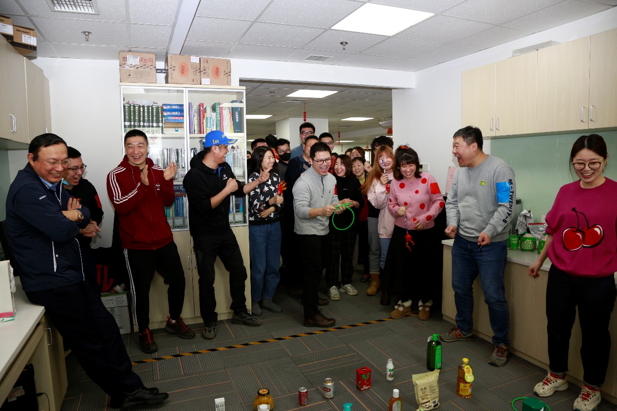 魏云董事长在给中联全体员工的新年寄语中说到,世人常说人们是因为看到而相信,但有一种力量是因为相信而看到。在人类历史长河中,瘟疫大流行都是有生命周期的,我们要相信现在经历的疫情一定会过去,而希望即将到来。公司在疫情爆发的两年中始终坚持抗疫情、练内功、保生存、谋发展的理念,为公司蓄积力量提了供保障;而疫情一旦过去,市场将恢复生机,公司的战略目标一定会很快实现,而这都离不开中联公司每一位员工的全情投入和锐意进取,愿我们一起在2022年中共同树信心、抢机遇、保平稳、争一流。 为了积极响应国家疫情防控的要求,今年年会活动没有安排外出聚会,而直接安排在公司的办公区。在公司管理层的总结报告结束后,全体员工充分利用公司办公区开展了热闹的竞赛小游戏等联欢活动。这里必须要点赞一下公区环境的氛围布置,从公司大门开始到接待厅、公区立柱、中央空调通风口、顶灯、墙壁一直到会议室,红红的小灯笼、大元宝、万字结......处处都是新年喜庆的氛围布置,让平时肃穆清冷的办公区一下充满了暖暖的温情。再来说说活动内容,公司年轻的员工组成了年会活动筹委会,他们亲手定制的竞赛小游戏包括乒乓传球、你写我猜、表演猜词、智慧套圈、绝地反击-吹乒乓球等等,在活动过程中没有公司管理层和普通员工的区别,所有人员随机分组、团队合作、积分赢大奖。大家玩儿的特别投入,种类繁多的小礼品价值虽然不高,但大家都在欢声笑语中你争我抢,既有个人展示又有团队配合,2021年就在这样的欢声笑语中悄悄过去了。冬末的阳光依然很有力量,我们因相信而看到希望,在这里我们愿与所有的合作伙伴、客户、展商、观众,精诚互助、团结友爱、一起向未来!