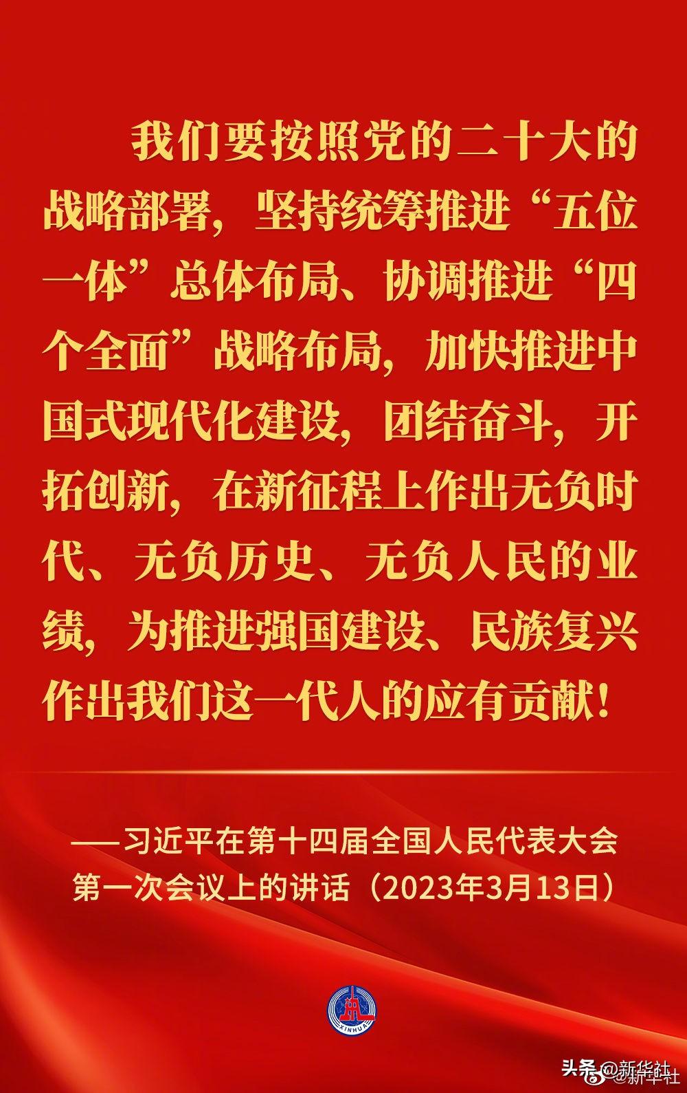 习近平在第十四届全国人民代表大会第一次会议上的讲话金句